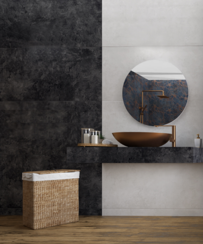 Gres VERSO GRIGIO z kolekcji verso Collection: The Mix & Match w formacie 60×120 cm to doskonała propozycja dla tych, którzy cenią surową, miejską estetykę. Płytka imituje beton, a jej matowa powierzchnia z delikatnymi przetarciami, z połyskiem carvingu i nieregularnymi wtrąceniami nadaje jej autentyczny wygląd. Odcień VERSO GRIGIO łączy w sobie głębokie szarości i grafit, co sprawia, że jest jednocześnie uniwersalny i wyrazisty. VERSO GRIGIO stanowi idealne tło dla odważnych aranżacji, w tym dla wzorzystych dekorów. Jej minimalistyczna faktura doskonale podkreśla bogactwo i różnorodność innych elementów z tej samej kolekcji, pozwalając na swobodne łączenie i tworzenie unikatowych przestrzeni. Płytka jest rektyfikowana, co zapewnia precyzyjne układanie i estetyczny, jednolity wygląd.