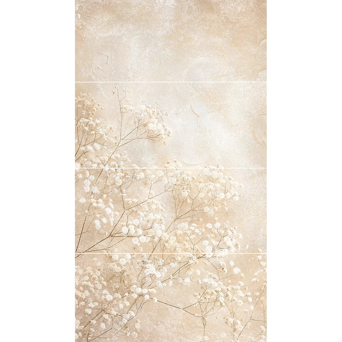 Soft Bloom 120X240 to subtelna, elegancka dekoracja wielkoformatowa inspirowana naturą i delikatnością suszonych kwiatów. Jasna, beżowo-kremowa paleta barw w połączeniu z miękką strukturą grafiki tworzy spokojne, harmonijne tło dla nowoczesnych i klasycznych wnętrz.